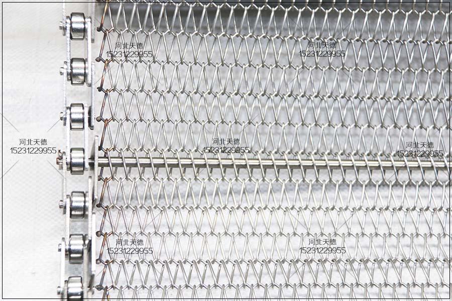 經(jīng)過(guò)一番的溝通后,我們天德廠家建議客戶采用以下規(guī)格的不銹鋼輸送帶: 蠶豆烘干金屬網(wǎng)帶采用大滾珠鏈條來(lái)輸送,輸送平穩(wěn),磨損也小,而且將蠶豆放到不銹鋼輸送帶上面后在輸送的過(guò)程中也不會(huì)出現(xiàn)下榻的情況。因此烘干機(jī)中間也不需要焊軌道,這樣也相應(yīng)的減少的成本。