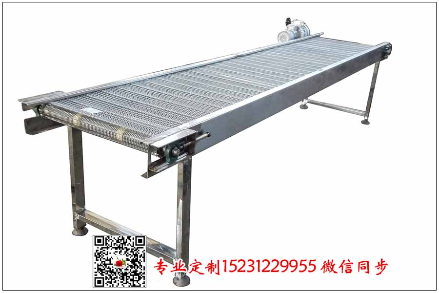 羊毛分揀線采用不銹鋼輸送帶來輸送,其結(jié)構(gòu)形式可以采用鏈條式鋼絲編織型輸送網(wǎng)帶,該輸送網(wǎng)帶孔徑可調(diào),絲徑可調(diào),鏈條節(jié)距可調(diào),訂購(gòu)隨意簡(jiǎn)單,以下是客戶訂購(gòu)的鏈條式不銹鋼網(wǎng)帶的訂單數(shù)據(jù),希望能給大家做個(gè)參考: 鏈條式不銹鋼輸送帶總寬為800毫米,長(zhǎng)度為30米 鏈條節(jié)距為38.1毫米(滾珠到滾珠的距離) 鋼絲輸送網(wǎng)帶孔徑為10*15毫米,孔徑可以根據(jù)自己的需要定制不銹鋼網(wǎng)帶的絲徑為1.2毫米,支軸直徑為8毫米,因?yàn)檩斔途W(wǎng)帶相對(duì)較寬,因此支軸的選擇不能太細(xì),否則會(huì)出現(xiàn)塌腰的情況,支軸之間的距離為15公分左右。