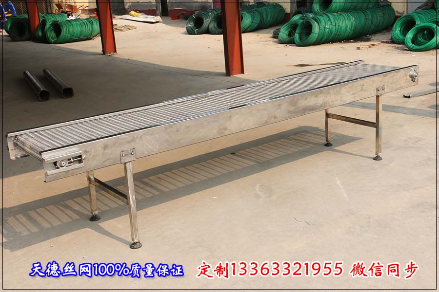 輸送形式有:水平直線輸送、提升爬坡輸送、轉(zhuǎn)彎輸送等多種輸送形式,根據(jù)需要可以在不銹鋼輸送帶的橫截面上焊擋板、鏈條兩側(cè)加裝擋板等附件,能滿足各種輸送行業(yè)的要求。 鏈板輸送機以標準頂板鏈為承載面,由馬達減速機做為動力輸送,輸送帶在專用的導軌中運行,根據(jù)生產(chǎn)工藝流程的不同鏈板可分為轉(zhuǎn)彎、直線或提升型,還可實現(xiàn)自動輸送線、分別包裝流水線等。