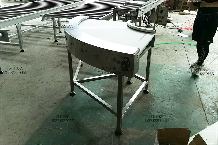 3.轉(zhuǎn)彎機輸送帶形式可以為滾筒式,板狀形式,皮帶式與網(wǎng)帶式等。