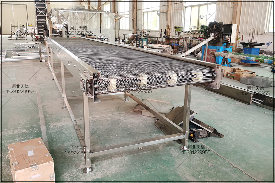帶有糾偏裝置能自動檢測出膠帶運(yùn)轉(zhuǎn)的趨勢,隨時進(jìn)行糾偏報警,防止物 料輸送偏離生產(chǎn)線另外,根據(jù)輸送產(chǎn)品的工藝要求,可以是單個的傳送,也能是多個組成或與其他輸送設(shè)備組成水平與傾斜的輸送系統(tǒng),明顯的提高整機(jī)的連續(xù)化生產(chǎn)效率。 網(wǎng)鏈輸送機(jī)選擇使用不銹鋼網(wǎng)帶作為載體,用來輸送多種形式的食品加工行業(yè)的烘干、去濕、冷凍等、熱處理等,同時不銹鋼板或者絲制成,具有耐高溫好清洗等特點(diǎn) 。 知道在食品生產(chǎn)加工過程中,要選用不同形式的平板鏈,可達(dá)到平面輸送、平面轉(zhuǎn)彎、提升下降等各種功能,實(shí)現(xiàn)食品加工企業(yè)多樣式輸送的要求。