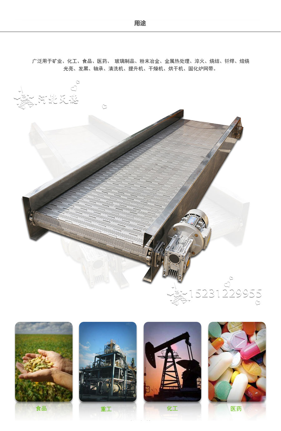 Iron plate conveyor belt is very strong, made by iron plate and chains, it's driven by chain. this belt suit to the small size and high density object's conveyoring, it's running steady, easily install and change, long serviceand high cost. usually used for middle and heavy weight's conveyor. iron steel sheet bended into hinges, use the support shaft combine the hinges and chains together. The ends of the chain can be used to fix the washer or cotter pin, cotter pin use convenient disassembly, convenient maintenance.