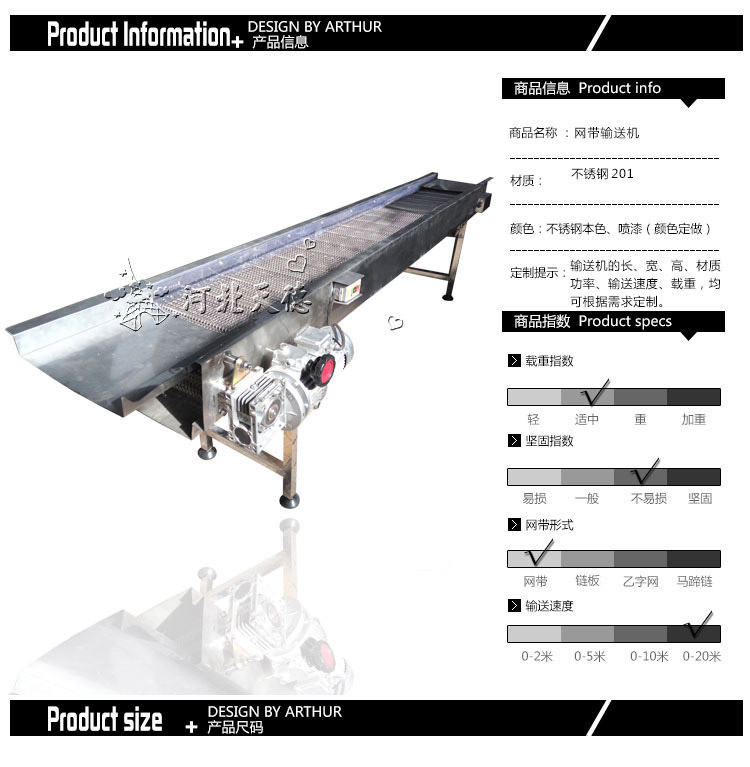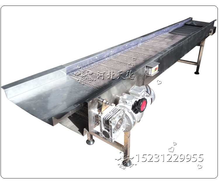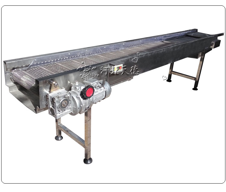 組成結(jié)構(gòu):由鏈輪、鏈條、網(wǎng)帶、驅(qū)動(dòng)設(shè)備組成,可根據(jù)輸送物料的種類(lèi)、體積、重量來(lái)選用不同形式的網(wǎng)帶。