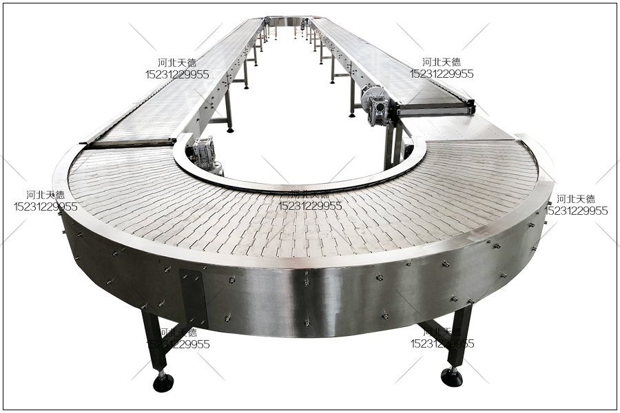 這臺(tái)設(shè)備是北京的客戶定制的,這臺(tái)鏈板輸送機(jī)流水線是由4臺(tái)鏈板輸送機(jī)組合安裝成的,有兩臺(tái)180度轉(zhuǎn)彎機(jī)和兩條平面輸送鏈板輸送機(jī)組裝成的,整臺(tái)設(shè)備長度為12米,寬度為800毫米,采用了2.5毫米后的鋼板轉(zhuǎn)彎成機(jī)身作為機(jī)架使用,采用板厚1.5毫米厚的鏈板作為輸送鏈板來輸送物品。整臺(tái)機(jī)器采用螺絲進(jìn)行拼接安裝成,可以方便的拆卸,運(yùn)輸也十分的方便。